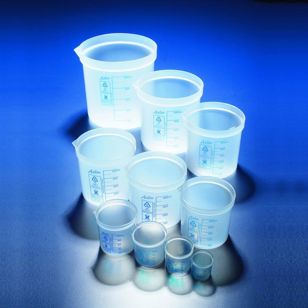 Azlon brand products offer a wide range of laboratory plasticware including plastic bottles, wash bottles, measuring cylinders, jugs and plastic beakers. Azlon reusable plastics cover a broad range of applications in the modern laboratory.
