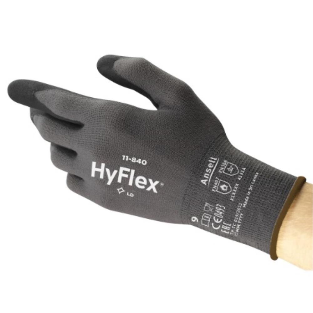 Ansell HyFlex 11-840 Industrial Foam Coated Work Gloves Size 9 L Black