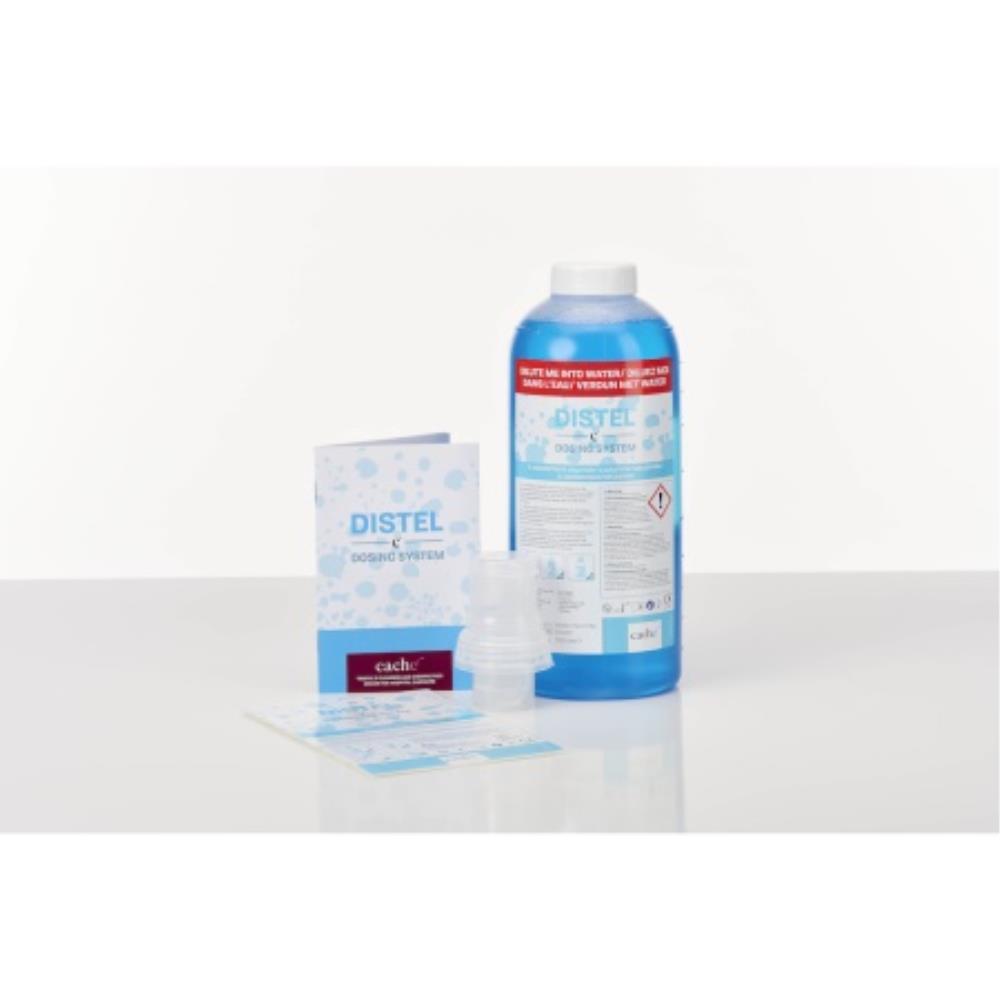 - CLE1144 - DISTEL Starter Pack contains: 1 x 1L DISTEL Concentrate, 5 x 1L DISTEL Dosing Bottles, 6 x 5mL Dosing Heads, 6 x Working Solution Bottle Labels