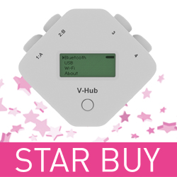 With a built-in rechargeable battery, the V-Hub powers all of the sensors for a whole class day.