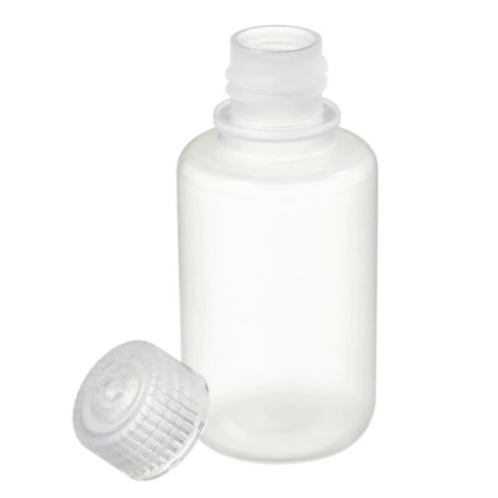 Narrow-mouth polypropylene copolymer bottles with closure. Ideal for lab applications requiring excellent chemical resistance and autoclaving. These PPCO bottles without contents bottles are translucent, providing good clarity for viewing contents. Excellent chemical resistance to most acids, bases, and alcohols. Withstands temperatures up to +121°C.