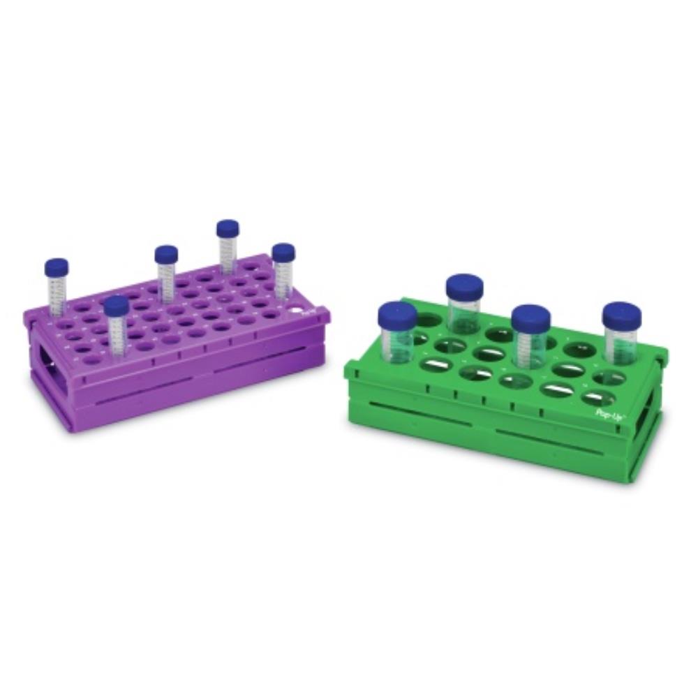 Polypropylene racks which collapse for compact storage and “pop-up” for quick use.