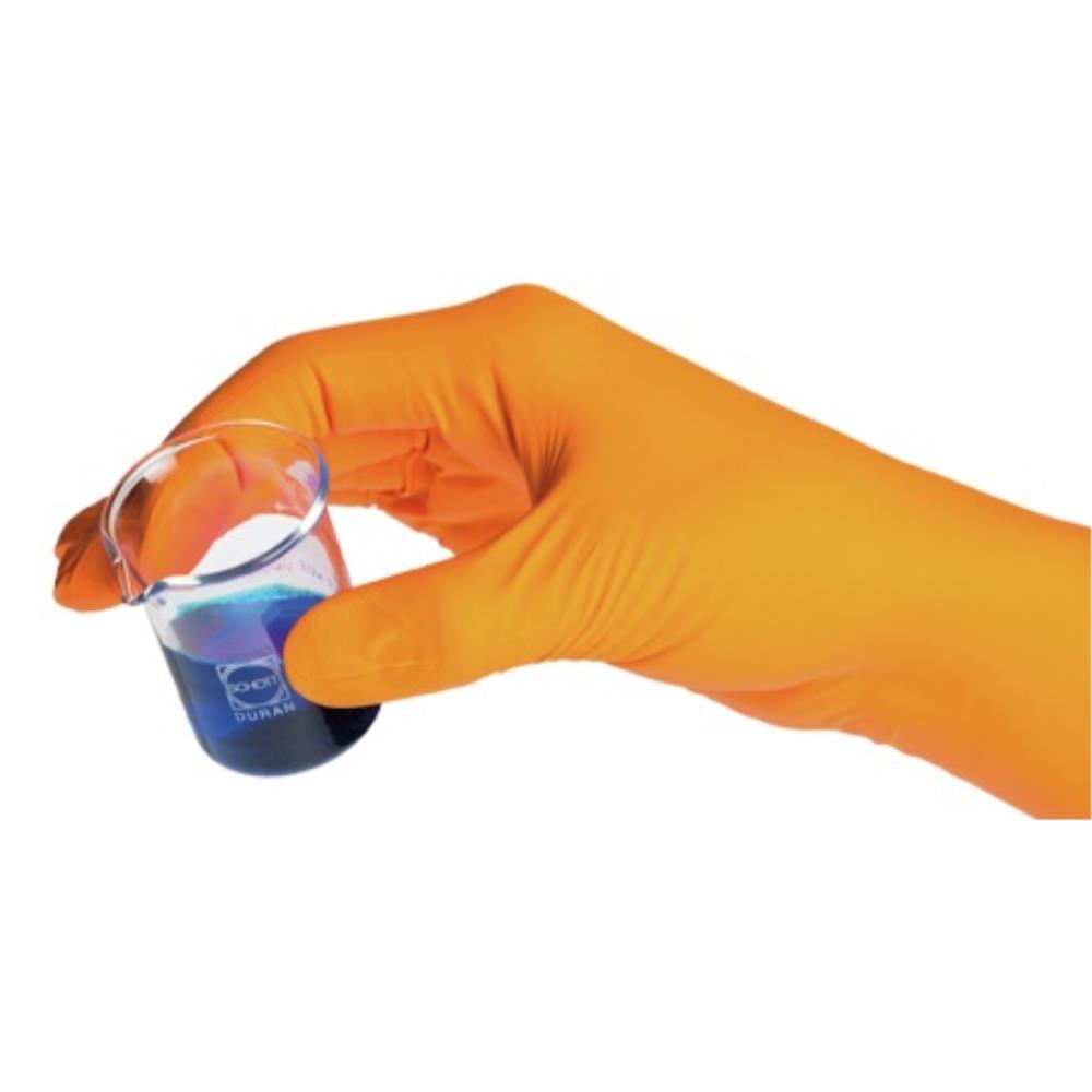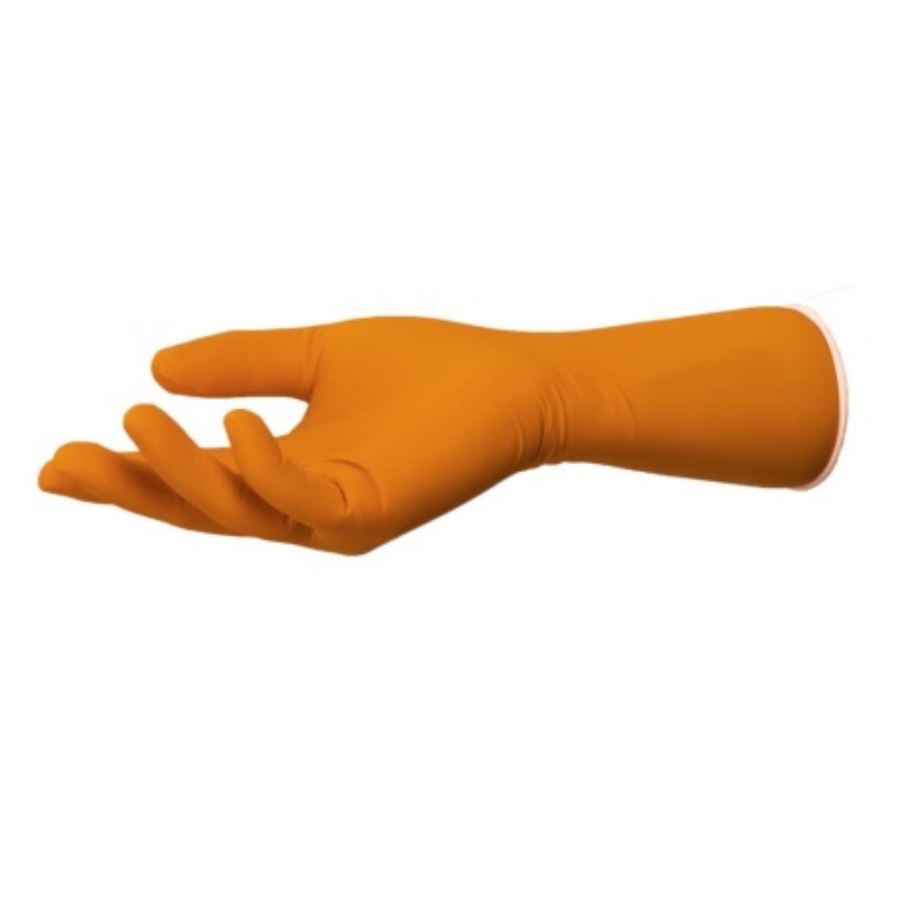 • Sterile, powder-free orange/white nitrile/polychloroprene glove