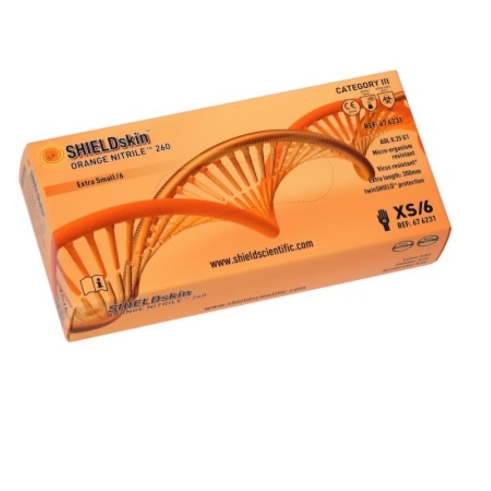 Shield Scientific SHIELDskin ORANGE NITRILE 260 Gloves (67 6231) - Size Extra Small