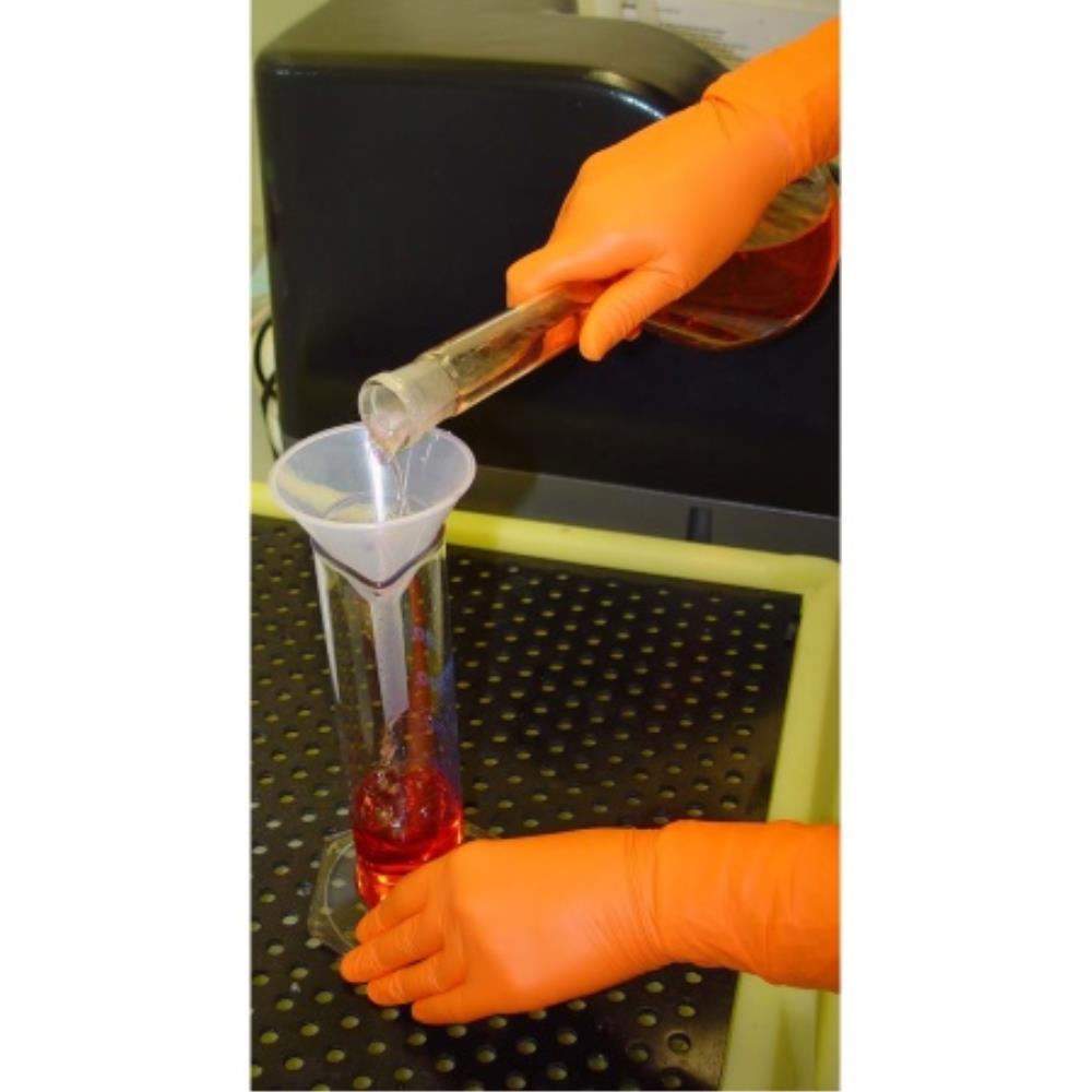 • Powder-free orange/white nitrile/Neoprene glove