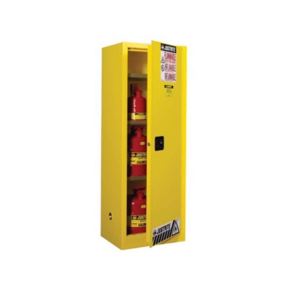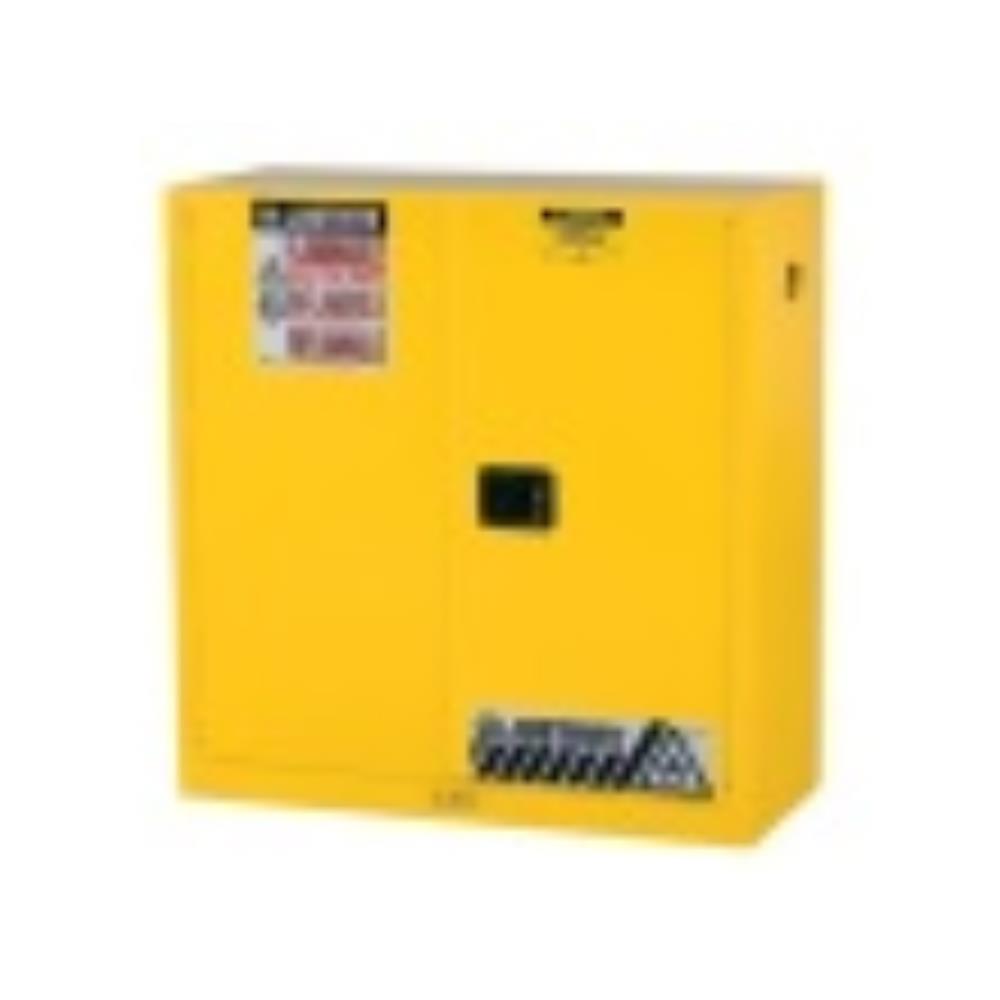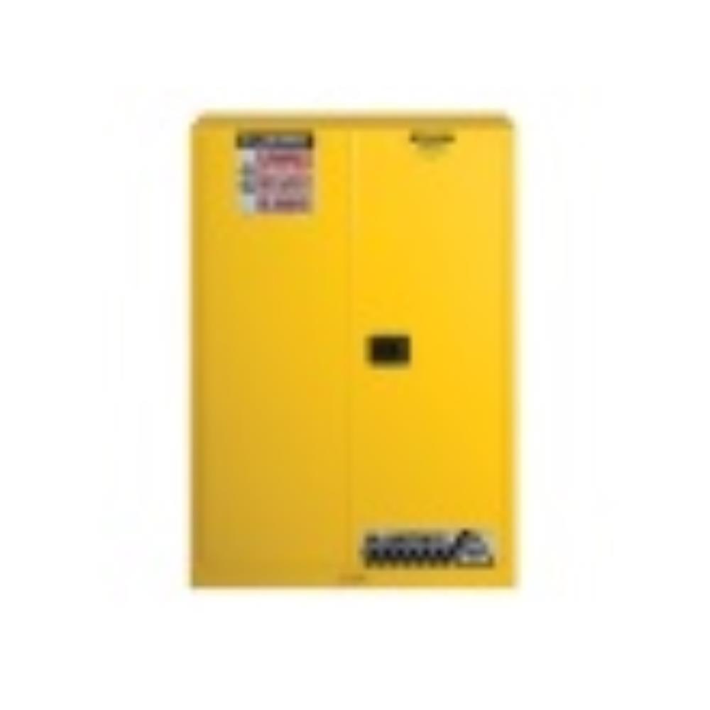 Protect workers, reduce fire risks, and improve productivity by storing flammable fuels and chemicals in code-compliant safety cabinets. Designed to meet OSHA and NFPA standards, Sure-Grip® EX cabinets are constructed of sturdy 18 gauge (1mm) thick double wall, welded steel with 38mm of insulating air space for fire resistance. High performance, self latching doors close easily and securely for maximum protection under fire conditions. Fail safe closing mechanism ensures three point stainless steel bullet latching system works every time