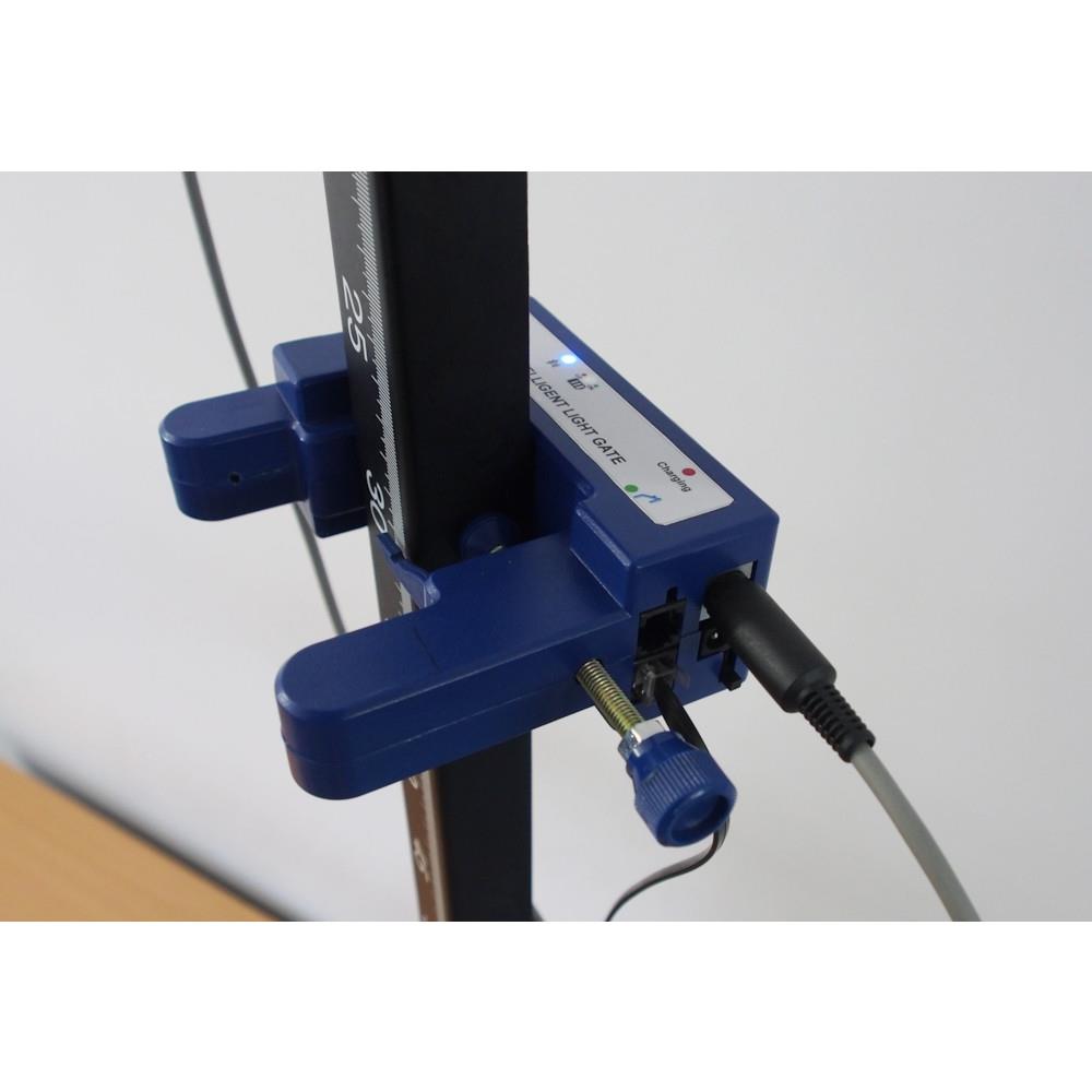A standalone light gate system that requires no separate timer or complex wiring setup. The ‘master’ light gate connects via Bluetooth to any tablet or PC running TimingPro software and the inbuilt rechargeable battery can provide power for an unlimited number of slave light gates (which connect by a single lead) or for the separately available g by freefall release mechanism. Ideal for use linear air tracks and dynamics ramps/cart. Determination of g by freefall can be performed in a number of ways using 1 light gate or 2 light gates in conjunction with the TimingPro g by freefall stand and solenoid.