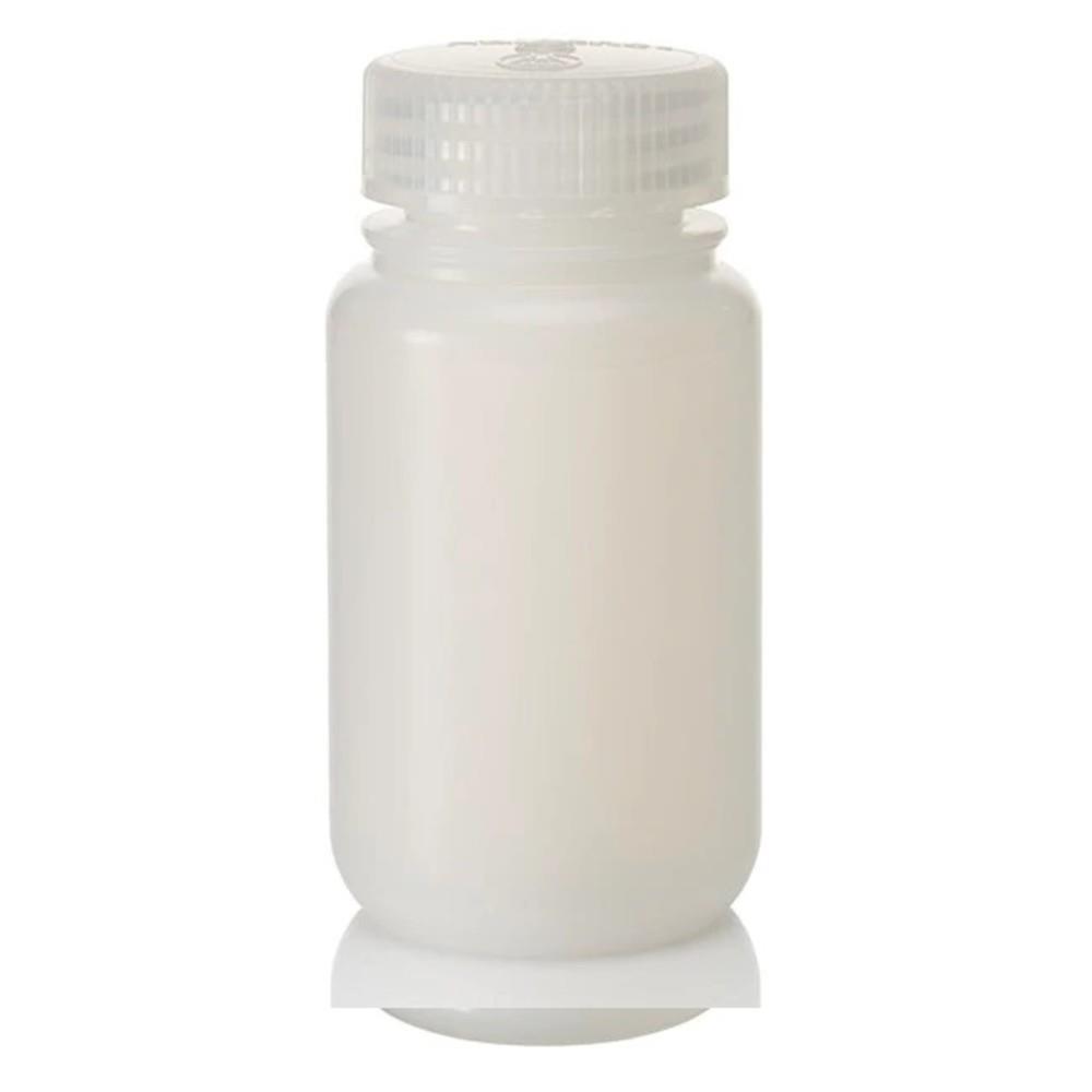 View liquid levels clearly in the impact-resistant Thermo Scientific™ Nalgene™ wide mouth LDPE bottles with closure. These translucent, low-density polyethylene bottles are ideal for storing chemicals and standards, as well as collecting and storing distilled water. Made only from high-quality, laboratory-grade plastic materials for dependably low leachables and extractables. Extremely low trace metal content in LDPE makes it ideal for trace metal analysis. Excellent chemical resistance to most acids, bases and alcohols. Wide mouth is easy to fill. Leakproof† performance is guaranteed.