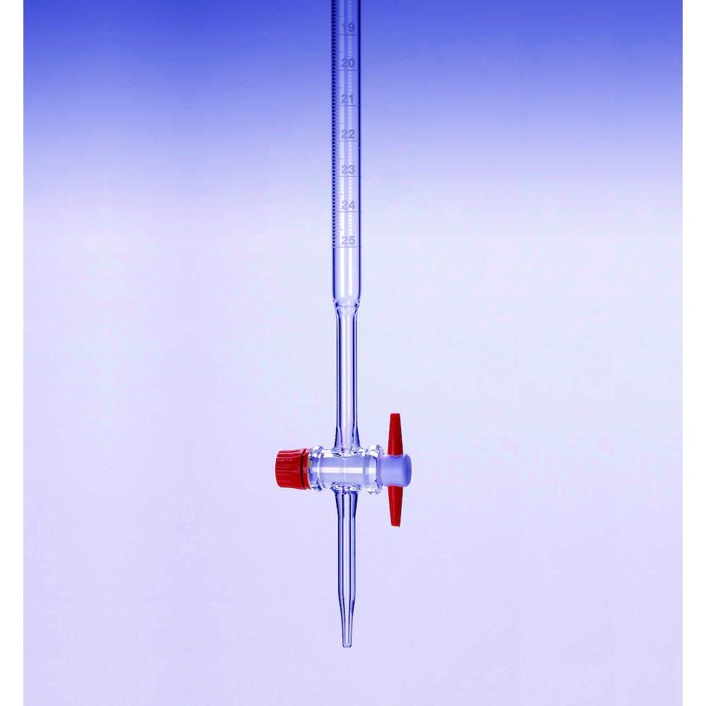 Burettes are precision glassware used for the accurate measurement and dispensing of liquids in titrations and other procedures. Their design allows for controlled, incremental delivery of liquids, making them essential for precise measurements and experiments. Our selection of burettes is manufactured from high-quality glass or plastic to ensure durability and accuracy. Available with various capacities, tolerances and classes, our burettes cater to a range of needs. Discover our range to find the perfect fit for your needs, ensuring precision and consistency.